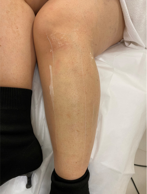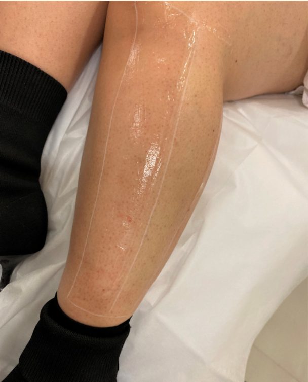 我都好期待打完之後嘅效果!之後治療師幫我剃走多餘毛髮,塗完gel劃好要打嘅地方,就開始幫我小腿脫毛啦!