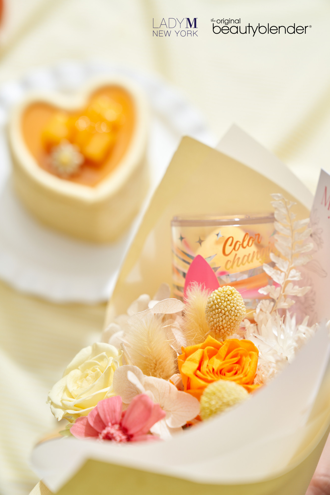 看完後想讓男友入手七夕零失誤組合了嗎?Lady M x beautyblender 聯手打造的愛心千層+永生花的浪漫聯名組合預購點這!