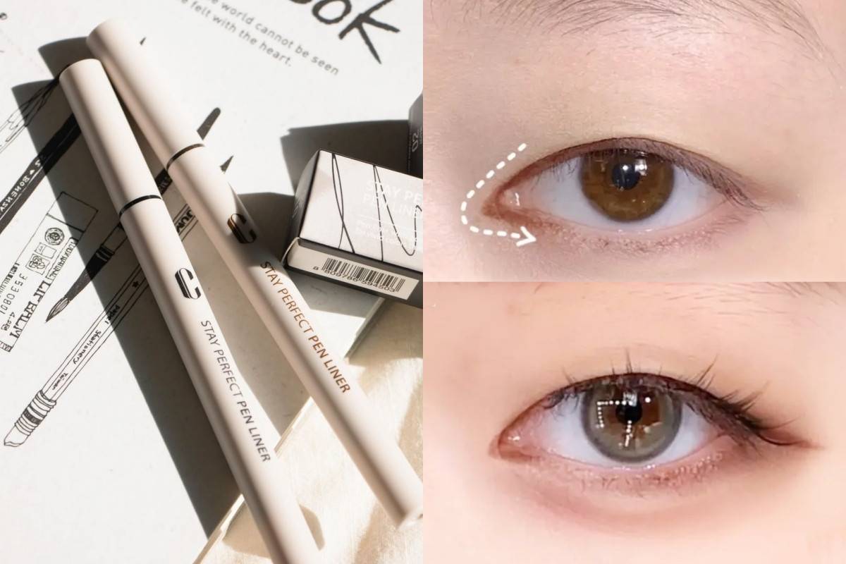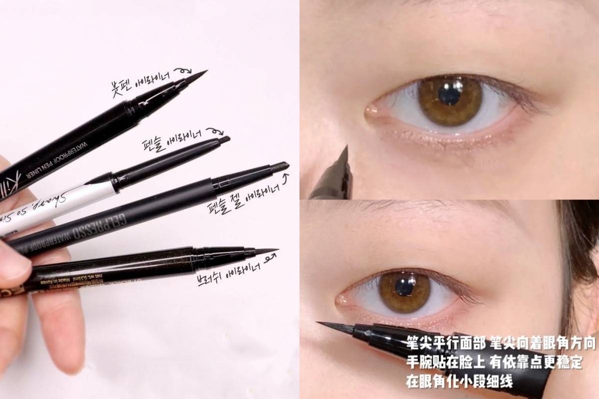 首先要先用手指輕輕往內撐開眼頭,並用眼線筆將眼頭上方的內側部位慢慢地畫出一條線,之後依樣用手撐開眼頭下方,並用眼線筆描繪線條!
