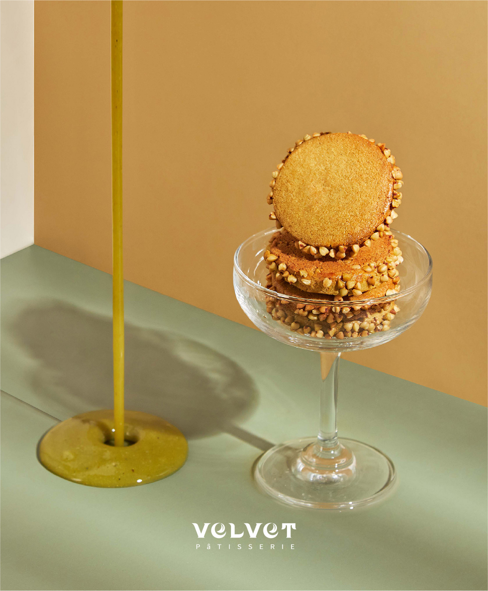 外酥內軟是法絨極具識別度的細緻表現,夾心使用70年老味道的新竹花生,製成滑順香醇花生醬內餡,配上口感十足的白玉麻糬,花生與麻糬的甜蜜滋味直奔心坎裡!