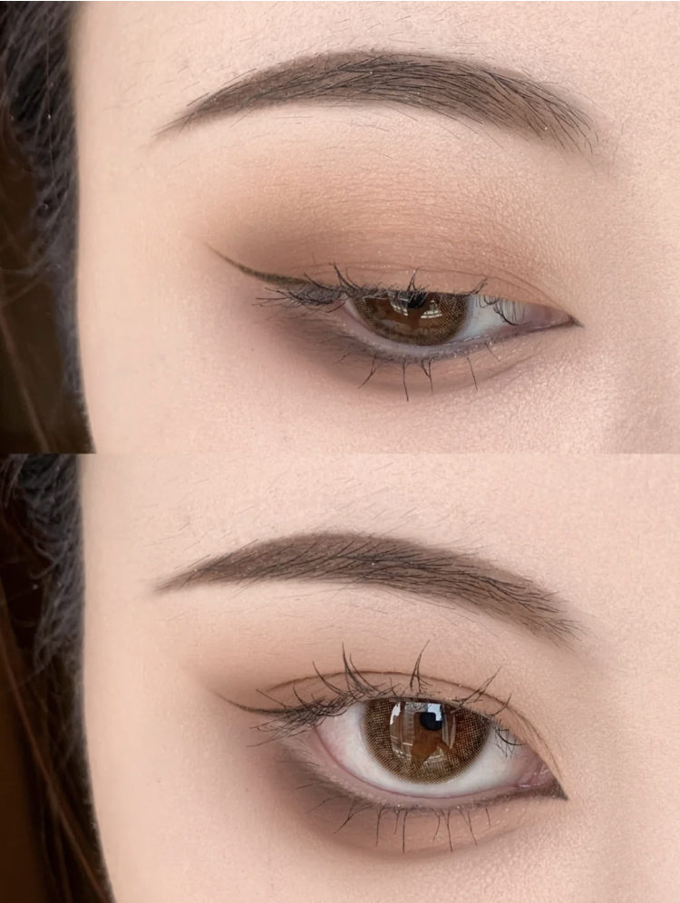 第一階段先不要太濃,幼狐眼妝的色調可以選用粉色調喔!先用淺色幫眼皮的打底,疊加主色在眼尾半眼窩處做暈染;接著用眼線色在眼尾處做加深,再用眼線勾勒出下眼線~最後拿出咖啡色眼線筆畫出微微上揚的眼線。