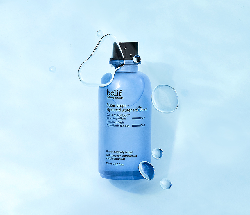 清爽水潤的質地,一抹好吸收!配方注入 belif 獨特成分「hyalucidTM多重保濕配方」完美調和5種玻尿酸、阿魏酸、甘油、與蘆薈萃取,有感超保濕!化妝水中特殊 Oil-drop 粒子,在肌膚表面形成輕盈舒適保水膜,幫助肌膚留住水分~讓乾燥粗糙的肌膚也能感受水潤、自帶水光(歡呼)