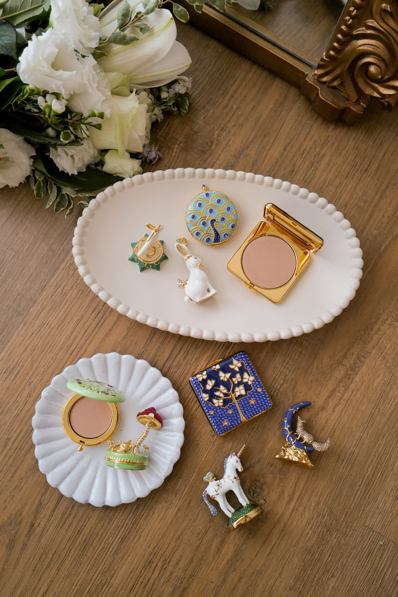 絕美收藏奢華工藝美妝!雅詩蘭黛限定鉅作極珍稀「2022限量金質粉餅、固體香精」~鑲滿寶石的陶瓷包裝好優雅!