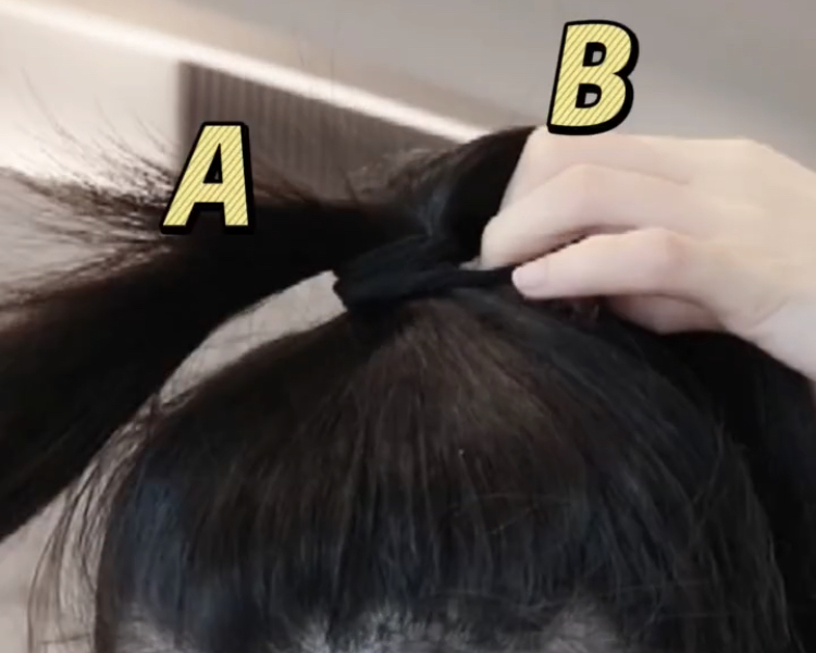 不知道有沒有SIS跟小編一樣綁高馬尾時就容易掉?尤其一跑動就整個散了TˇT來來來~試著在髮圈綁到最後一圈時「拉出髮圈」,將馬尾一分為二!之後再束住「B髮束」,這樣做就能讓你馬尾整天不掉囉!