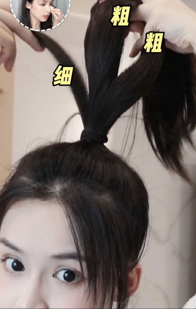 是不是很難綁出超高馬尾又不露髮縫呢?小編在網路上學到一招秒招~就是「把頭整個往下」啦!像洗頭一樣的島過來,保證你綁出來的馬尾超~級~高(笑)
