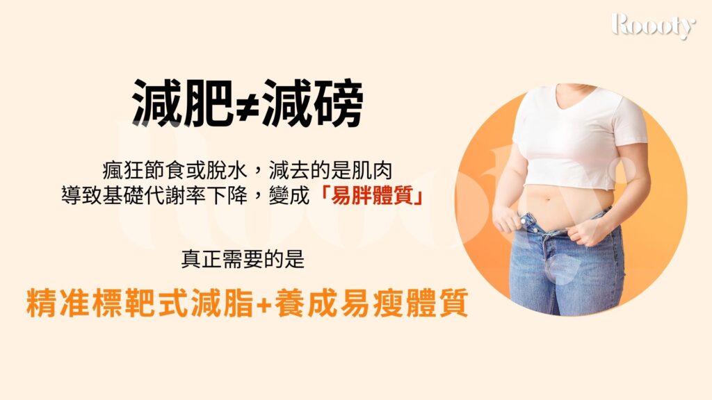 體重由肌肉、脂肪、骨骼、水分等構成。瘋狂節食或脫水,減去的是寶貴的肌肉,這會導致基礎代謝率下降,讓您變成「易胖體質」,一旦恢復飲食就會迅速復胖。唯有精準減去多餘脂肪,同時保留甚至增加肌肉,才能打造出緊實、有型的精瘦體態,並真正提升健康代謝,擺脫溜溜球效應的惡性循環。